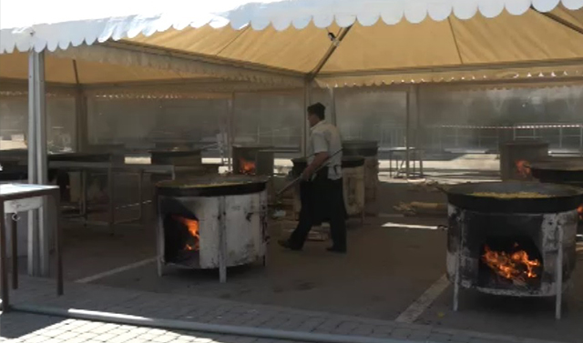 Сейчас на центральной площади Грозного развернута импровизированная кухня. Это ежегодная благотворительная акция Регионального общественного фонда имени Ахмата-Хаджи Кадырова, все желающие получают возможность бесплатно разговеться.