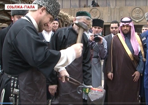В частности, здесь были выставлены национальные музыкальные инструменты, старинные экземпляры холодного оружия, предметы культуры и быта. В ходе осмотра Р. Кадыров принял участие в изготовлении лошадиной подковы, став на время помощником кузнеца.