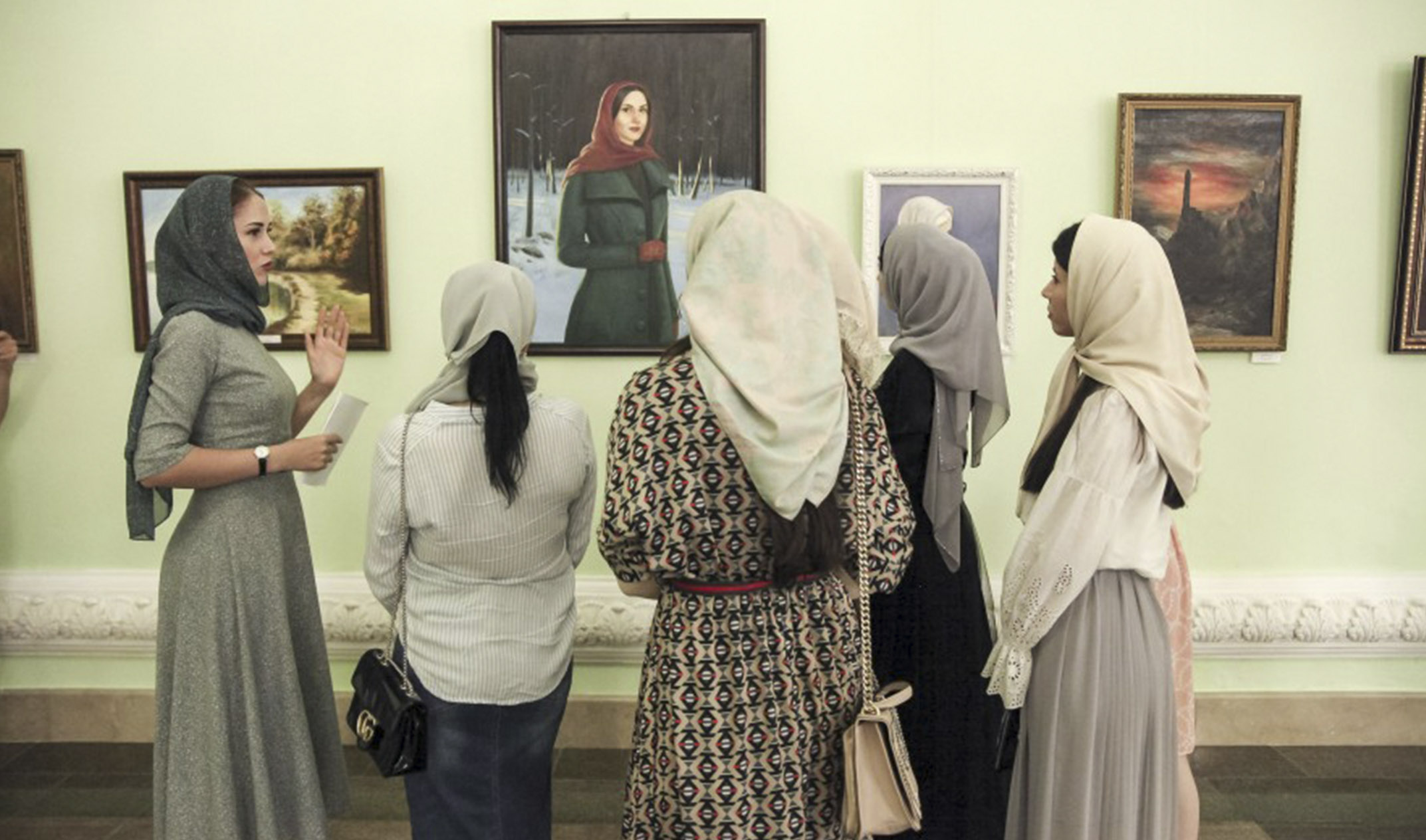 В рамках проекта «Лицом к лицу» для студентов провели экскурсию по персональной выставке живописных картин «Краски моей души» Анжелики Дадаевой.