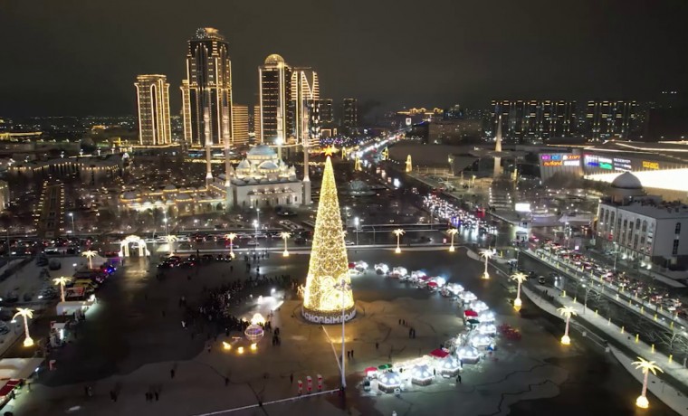 На центральной площади Грозного торжественно зажгли огни на главной новогодней ёлке