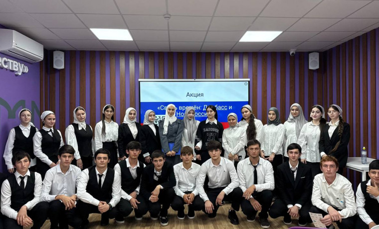 В новом здании Молодёжного центра Чеченской Республики, открытом по президентской программе «Регион для молодых», состоялась акция «Связь времён: Донбасс и Новороссия» от региональной команды Всероссийского студенческого проекта «Твой Ход» Росмолодёжи. Об этом сообщает пресс-служба молодёжного центра.