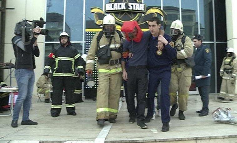 Пострадавших отвозят кареты скорой медицинской помощи. В сегодняшних учениях, кроме служб пожарной безопасности, принимают участие сотрудники центра медицины катастроф, министерства внутренних дел и специалисты жилищно-коммунальной сферы: всего около 60 человек и 15 единиц спецтехники.