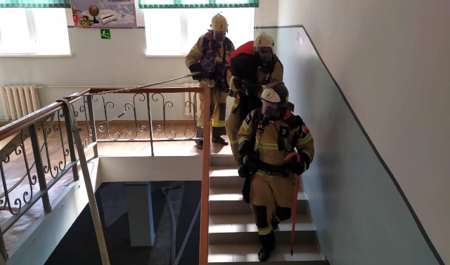 Вскоре условный пожар был ликвидирован. В ходе мероприятия были проверены подъездные пути к зданию и исправность источников противопожарного водоснабжения. С обслуживающим персоналом школы сотрудники МЧС провели противопожарные инструктажи.