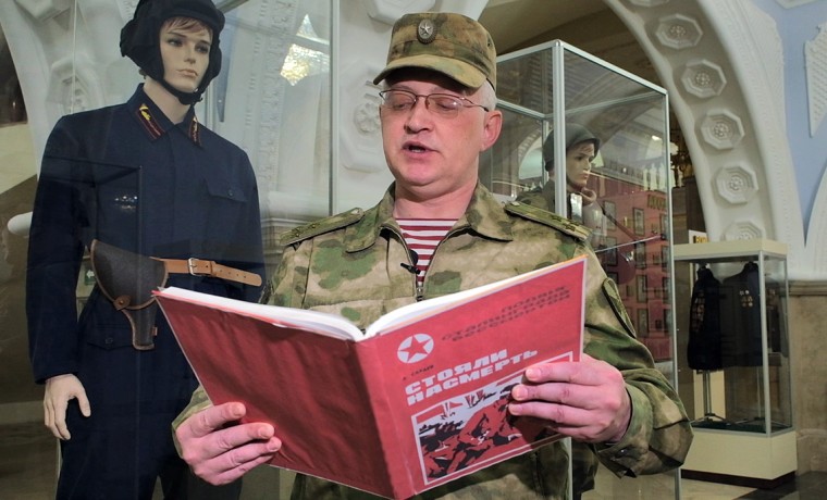 На фоне экспозиции Мемориального комплекса славы имени А.А. Кадырова «Этот день мы приближали как могли» прозвучали эпизоды книги генерал-майора Александра Сараева, посвященные боям за высоты 101.3, 135.4 и подвигу батальонного комиссара Афанасия Михайловича Карпова.